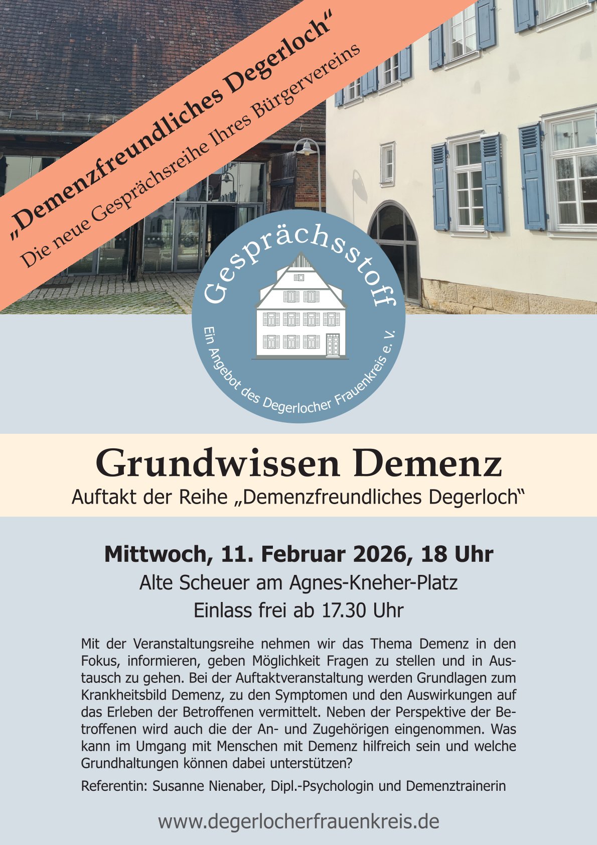 Der Degerlocher Frauenkreis e.V. ist ein Bürgerverein, der BürgerInnen die Möglichkeit bietet, sich zu engagieren, eine Aufgabe zu finden, mit der sie sich einbringen können und gebraucht werden. Es ist ein Verein mit einem breiten Mitmach-Angebot für Jung und Alt. Und es ist ein Verein, der Nachbarschaftshilfe leistet.