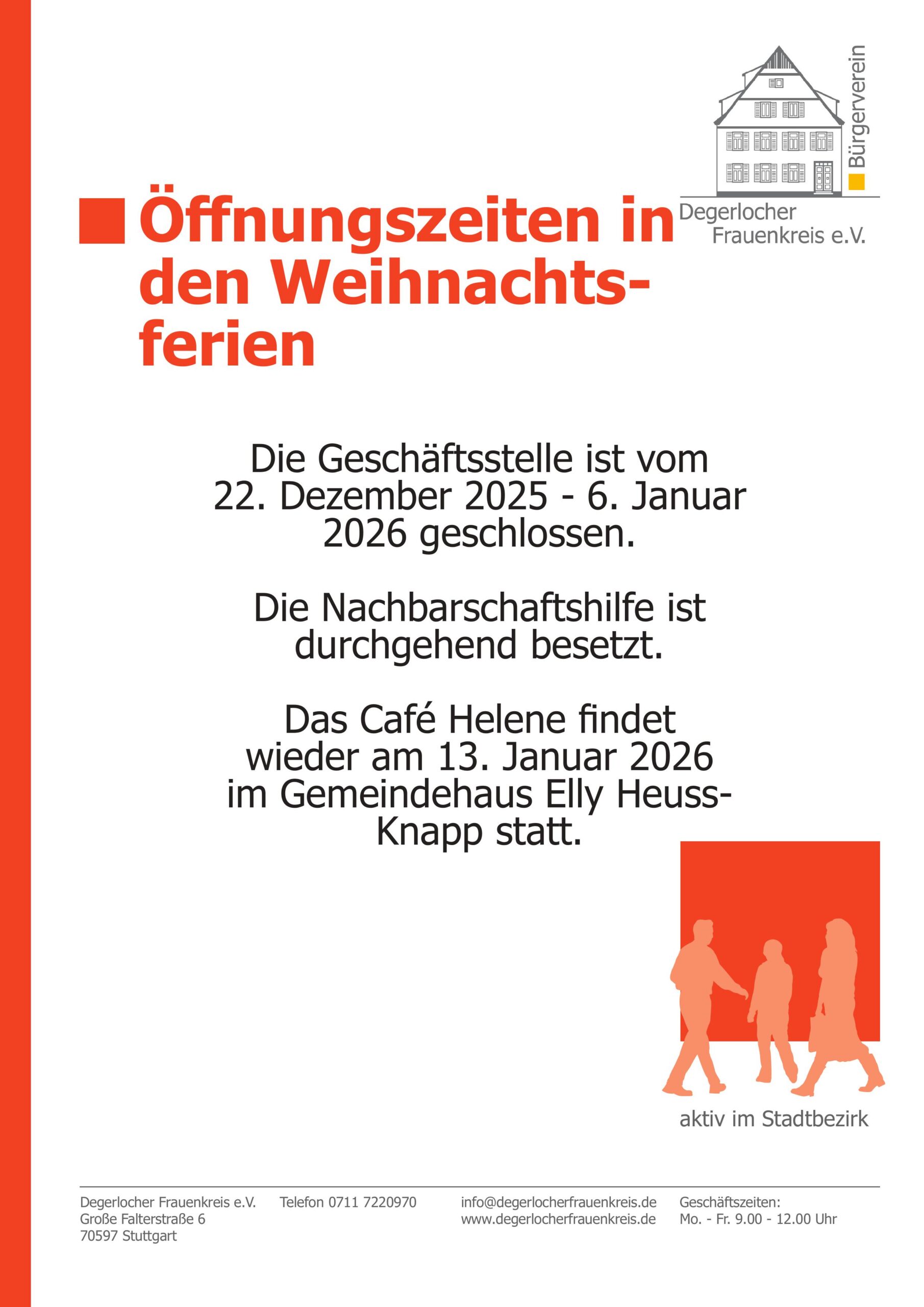 Öffnungszeiten in den Weihnachtsferien.